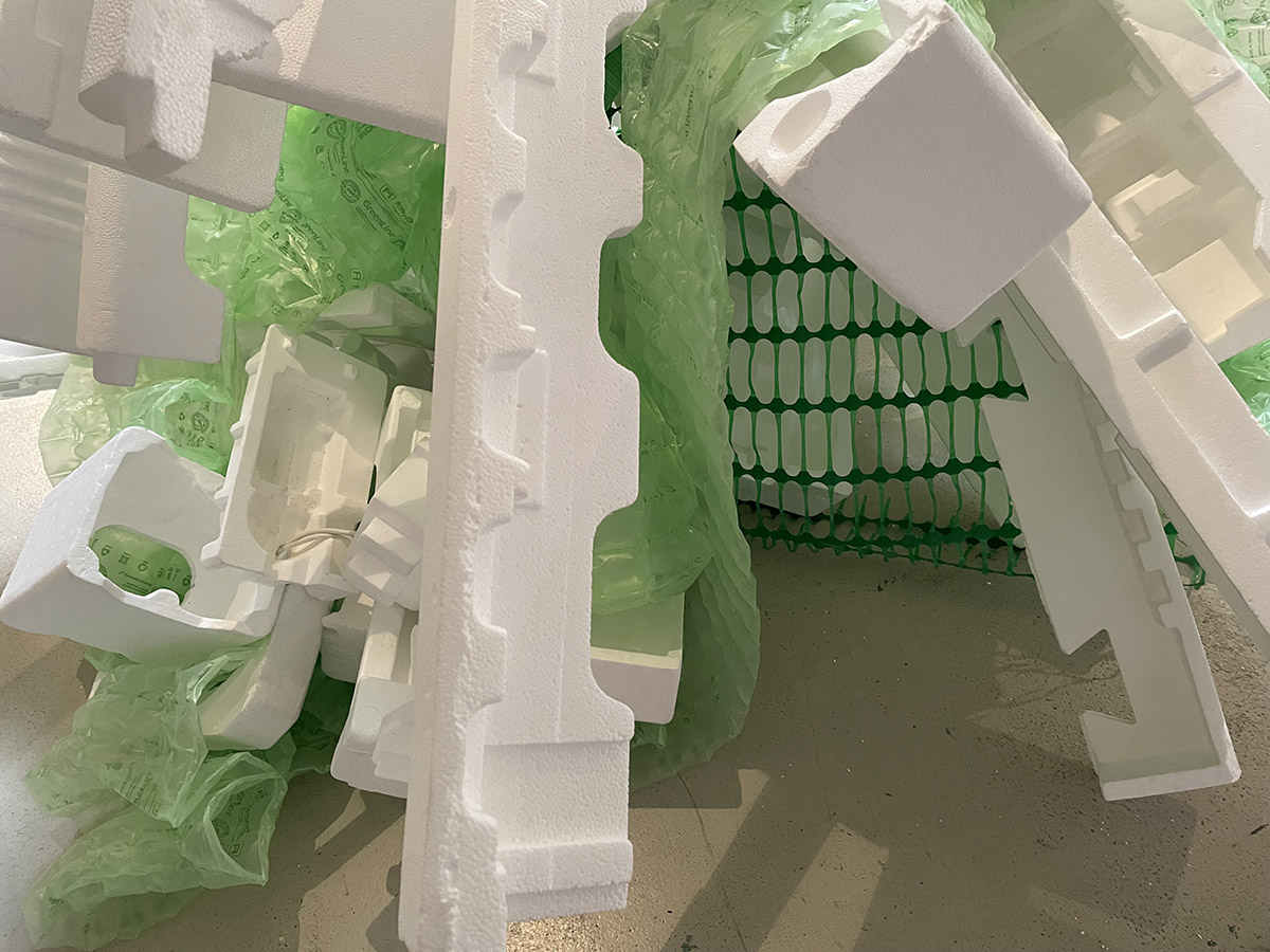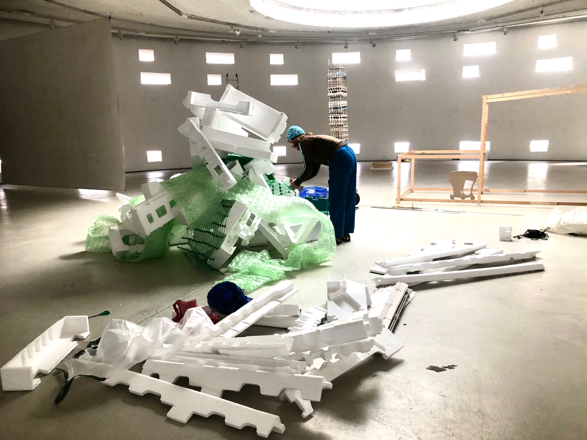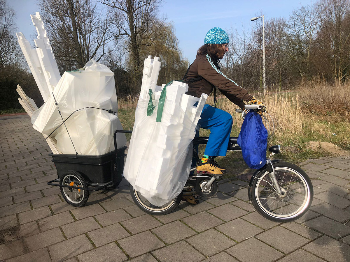 In Amsterdam, she carries out her ongoing project ‘Your Trash is My Treasure.’ Here, she creates temporary assemblages of discarded objects and materials found on the streets, scattered throughout the city. This project began during the Covid-19 pandemic from the artist’s residency ‘BijlmAir’ in the Bijlmer.